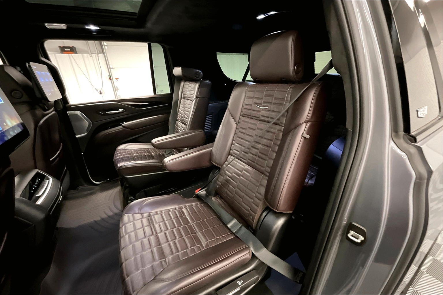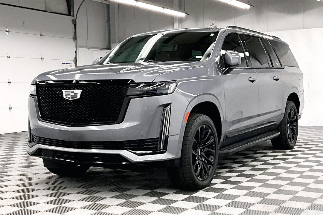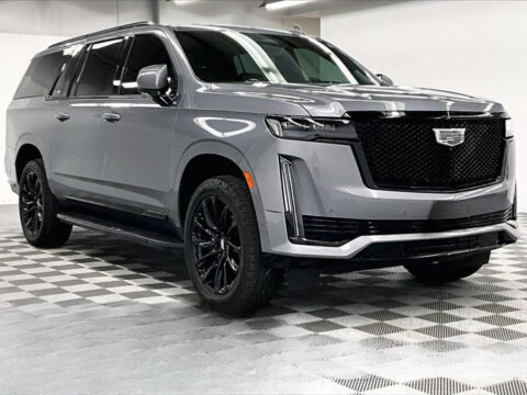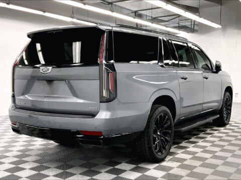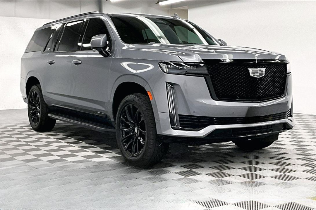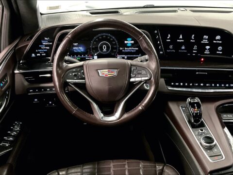 2 OWNER with ZERO ACCIDENTS, Four Wheel Drive, 3rd Row Seating, 2nd Row Bucket Seats, Onyx Package, Touring Package, Escalade ESV Sport Platinum 4x4 - Onyx Pkg - Pano Roof - DVD - 22'' Wheels, 4D Sport Utility, 4WD, Satin Steel Metallic, 16.9" Diagonal OLED Infotainment Screen, 2-Presets Memory For Driver Seat Adjuster, 3.23 Axle Ratio, 3rd row seats: split-bench, 4-Way Power Driver Lumbar Seat Adjuster, 4-Way Power Front Passenger Lumbar Seat Adjuster, 4-Wheel Disc Brakes, 8-Way Power Driver Seat Adjuster, 8-Way Power Front Passenger Seat Adjuster, A/V remote, ABS brakes, Adaptive Cruise Control, Air Ride Adaptive Suspension, AKG Studio Reference 36-Speaker Audio System, Apple CarPlay/Android Auto, Auto High-beam Headlights, Auto tilt-away steering wheel, Auto-dimming door mirrors, Automatic Seat Belt Tightening, Automatic Stop/Start, Automatic temperature control, Body-Color Door Handles, Bumpers: body-color, Delay-off headlights, Door Lock & Latch Shields, Electronic Limited-Slip Differential, Enhanced Automatic Emergency Braking, Enhanced Automatic Parking Assist, Floor Console w/Covered Storage, Front Auxiliary 12-volt Power Outlet, Front Bucket Seats, Front dual zone A/C, Full Semi-Aniline Leather Seats, Fully automatic headlights, Garage door transmitter, Glass Breakage Sensor, Gloss Black Escalade Nameplate (LPO), HD Radio, Headphones, Heads-Up Display, Heated & Ventilated Driver & Front Passenger Seats, Heated door mirrors, Heated rear seats, Hitch Guidance w/Hitch View, Illuminated entry, Illuminating Front & Rear Sill Plates, Integrated Trailer Brake Controller, Memory Driver Seat, Monochrome Cadillac Emblems (LPO), Navigation System, Onyx Package (LPO), Panic alarm, Platinum Interior Trim, Power door mirrors, Power driver seat, Power Liftgate, Power Lumbar Massage Driver Seat, Power Lumbar Massage Front Passenger Seat, Power Panoramic Tilt-Sliding Sunroof, Power steering, Power windows, Preferred Equipment Group 1SH, Radio: AM/FM/SiriusXM w/Navigation, Rain sensing wipers, Rear air conditioning, Rear audio controls, Rear Camera Mirror, Rear Camera Mirror Washer, Rear Cross Traffic Alert, Rear Seat Entertainment System, Rear window defroster, Rear window wiper, Reconfigurable Full-Color Head-Up Display, Remote keyless entry, Reverse Automatic Braking, Running Board Assist Steps, SiriusXM w/360L, Smart Trailer Integration Indicator, Split folding rear seat, Start/Stop System Disable Button, Steering wheel memory, Steering wheel mounted audio controls, Teen Driver, Telescoping steering wheel, Theft-Deterrent Alarm System, Tilt steering wheel, Touring Package, Trailer Side Blind Zone Alert, Turn signal indicator mirrors, Variably intermittent wipers, Vehicle Inclination Sensor, Vehicle Interior Movement Sensor, Wheels: 22" 12-Spoke Gloss Black Alloy (LPO), Wireless Apple CarPlay/Wireless Android Auto. Satin Steel Metallic 2022 Cadillac Escalade ESV Sport Platinum 4x4 - Onyx Pkg - Pano Roof - DVD - 22'' Wheels 4WD 10-Speed Automatic with Overdrive